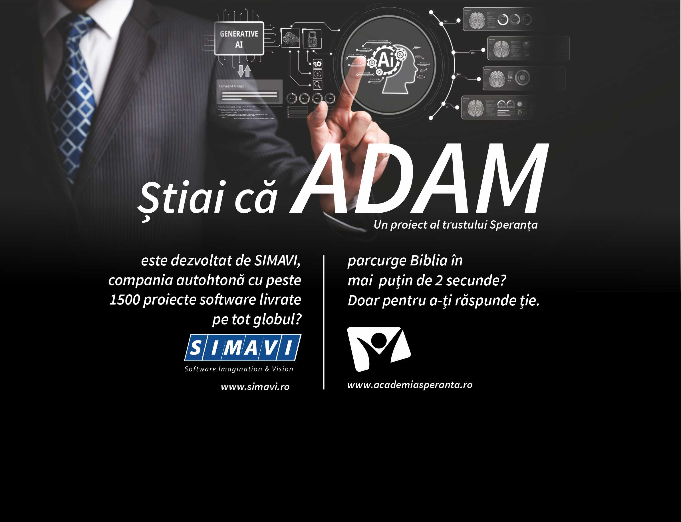 Software Imagination & Vision (SIMAVI) and Academia Speranța officially launch “Adam” – the first AI-powered chatbot in Romania dedicated to Bible study. This innovative digital solution, developed by SIMAVI for Academia Speranța, is available free of charge to anyone interested in exploring the Scriptures in a modern, interactive, and deeply personal way.