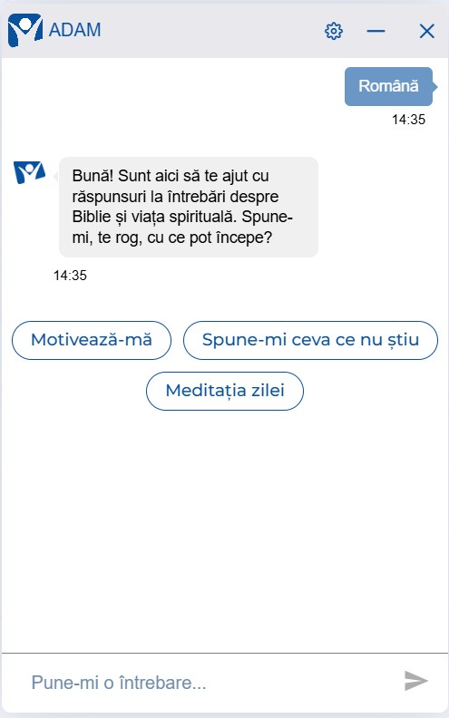 “We hope Adam will become a genuine support tool for all those interested in spiritual knowledge—whether believers, students, teachers, or researchers. It’s an intelligent guide that makes the complexity of the Bible accessible through a natural and friendly dialogue,” said Beatrice Lospa, Director of Academia Speranța, during the official launch event held on Saturday, May 31, 2025.