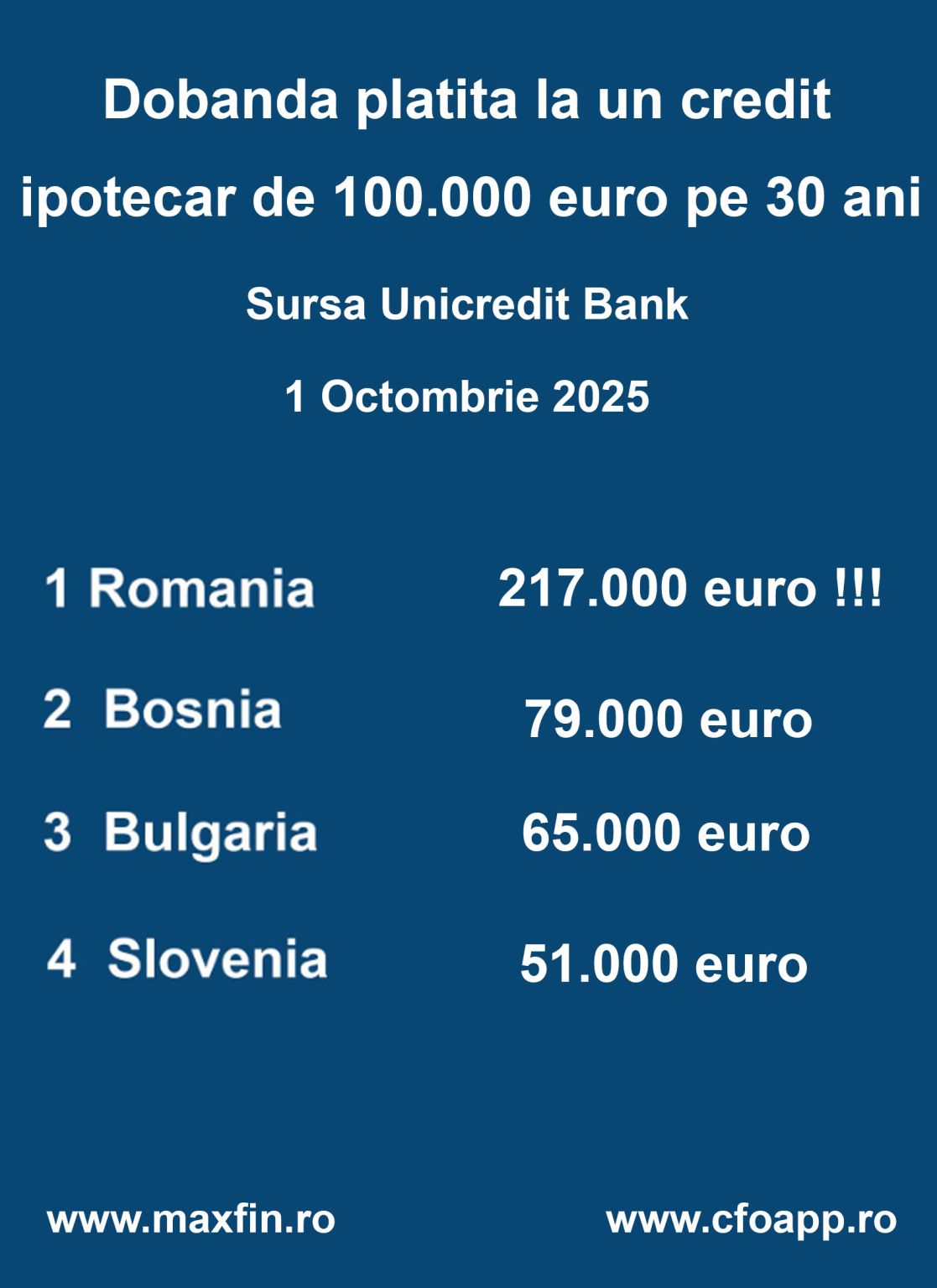 In Romania habar nu avem cum se calculeaza dobanda si rata la un credit bancar In scoala invatam despre euglena verde Dar nu ne invata nimeni cum se calculeaza dobanda la un credit In viata reala nu ne intreaba nimeni despre euglena verde Dar majoritatea avem credite la banca In poza sunt dobanzile platite la un credit ipotecar pe 30 de ani, la Unicredit Creditele sunt in moneda nationala dar pentru comparatie valorile le-am transformat in euro Linkurile de la Unicredit le-am pus in comentariu De exemplu in Romania platesti o dobanda totala de aproximativ 4 ori mai mare decat in Bulgaria !!! Din acest motiv preturile la locuinte au ajuns la un nivel inaccesibil pentru majoritatea oamenilor Am facut un sondaj pe Linkedin Din peste 5.000 de oameni care au raspuns, 92 % au spus ca preturile la locuintele din Romania sunt inaccesibile Din pacate nici macar agentii imobiliari nu stiu sa calculeze dobanda la un credit bancar In US ca sa fii agent imobiliar trebuie sa faci scoala si sa dai examen pentru a lua licenta In Romania daca nu ai nicio meserie si habar nu ai sa faci nimic, foarte probabil te faci agent imobiliar Agentii imobiliari au invatat o propozitie „ Preturile la locuinte vor creste” Unii devin agresivi daca le explici ca preturile sunt inaccesibile Si ca piata imobiliara din Romania este o imensa bula speculativa Saptamana trecuta am fost jignit pe retelele sociale intr-un mod golanesc de mai multi agenti imobiliari deoarece am explicat ca in Romania este o foarte mare bula imobiliara Am facut un articol in care le-am pus pozele si copii dupa injuraturile lor Eu am peste 100.000 de urmaritori pe retelele sociale iar articolul a fost vizualizat de peste 80.000 de oameni Societatea ar trebui sa evite si sa sanctioneze persoanele care au comportament golanesc In Romania nu avem habar ce inseamna credit ipotecar Habar nu avem ce inseamna ipoteca Multi afla cine este cu adevarat proprietarul locuintei doar dupa ce nu platesc 3-4 rate la banca In 2023 m-am intalnit la o conferinta cu un fost coleg Mi-a spus ca si-a cumparat un apartament de 3 camere cu 160.000 euro, luand un credit ipotecar I-am zis ca mi se pare foarte mare pretul El mi-a spus ca isi permite deoarece are un salariu mare L-am intrebat cat timp isi permite Si-a mai permis vreo 12 luni Anul trecut firma la care lucra a facut restructurari si el si-a pierdut locul de munca Multi nu inteleg ca dobanzile la credite vor mai creste Romania se imprumuta cu 8% In mod normal toate creditele ar trebui sa inceapa de la o dobanda de 12% Mai jos un excel complex facut de mine in care poti sa simulezi ratele si dobanzile la un credit Acest excel este folosit de noi si de clientii nostri atunci cand iau un credit Sigur te va ajuta https://lnkd.in/ddeYFP3f