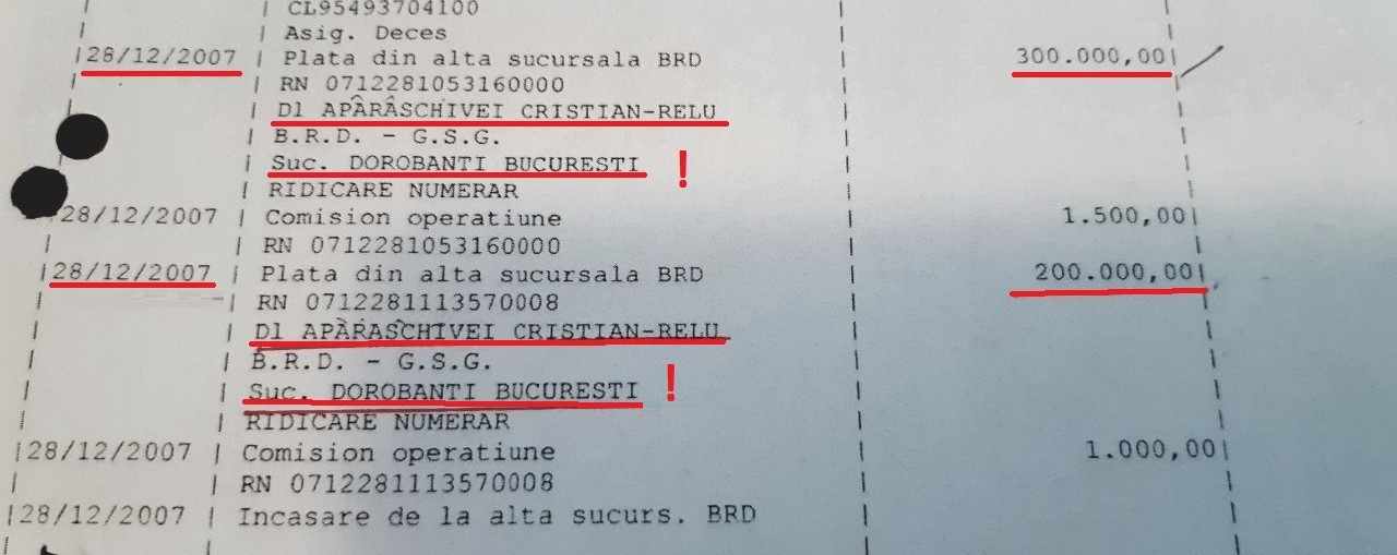 In 11.03.2008 intra 200.000 euro in acelasi cont a lui Aparaschivei Cristian de la Sucursala Academiei, provenind de la RECIPLIA SRL. RECIPLIA SRL avea contul nr : RO81BRDE445 SV 6890054 4450 si era deschis chiar in Sucursala Dorobanti.