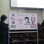 Cristina Popescu, Directorul General Romfilatelia a prezentat elementele panoului dedicat evenimentului, fiind etalate toate componentele emisiunii filatelice aniversare din acest an, alături de trei secvențe fotografice în care marele savant se află în ipostaza de profesor, cercetător în laboratorul său și prezență onorabilă în sediul bibliotecii Institutului de Biologie și Patologie Celulară „Nicolae Simionescu” din București, în anul 1992.