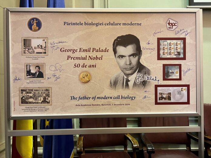 Astăzi, Aula Academiei Române a găzduit Sesiunea omagială „George E. Palade – 50 de ani de la decernarea Premiului Nobel. Tradiție și continuitate”, organizat de Academia Română, Secția de științe bilogice, Secția de științe biologice și Institutul de Biologie și Patologie Celulară „Nicolae Simionescu”.