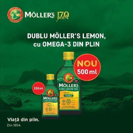 Cu această ocazie, brandul nr. 1 din Norvegia pe segmentul de suplimente alimentare a lansat în România un produs aniversar: Möller’s Lemon Flavour FAMILY, 500 ml, care susține sănătatea întregii familii.