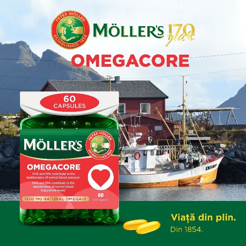 Tot cu ocazia aniversării a 170 ani în lume și a 10 ani pe piața din România, brandul norvegian a relansat sub o nouă imagine produsul Möller’s OMEGACORE, capsulele moi ce susțin sănătatea inimii.