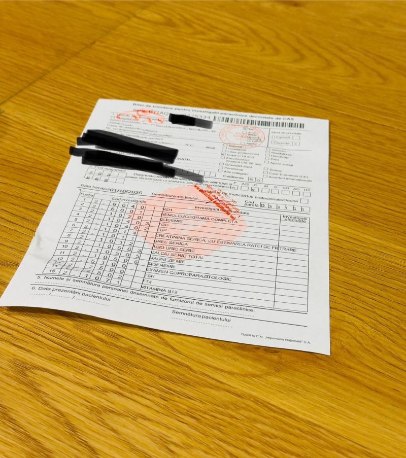 Scriu asta pentru că am obosit să aud: „așa merge la noi”. Nu, nu „merge”. Merge doar pentru cine n-are treabă cu realitatea. Eu o am. Am două fetițe gemene. Una dintre ele a avut nevoie de analize uzuale, nimic exotic: hemoleucogramă, fier/feritină, vitamina D – verificări de rutină pentru copii, recomandate de medicul de familie. Am bilet de trimitere.