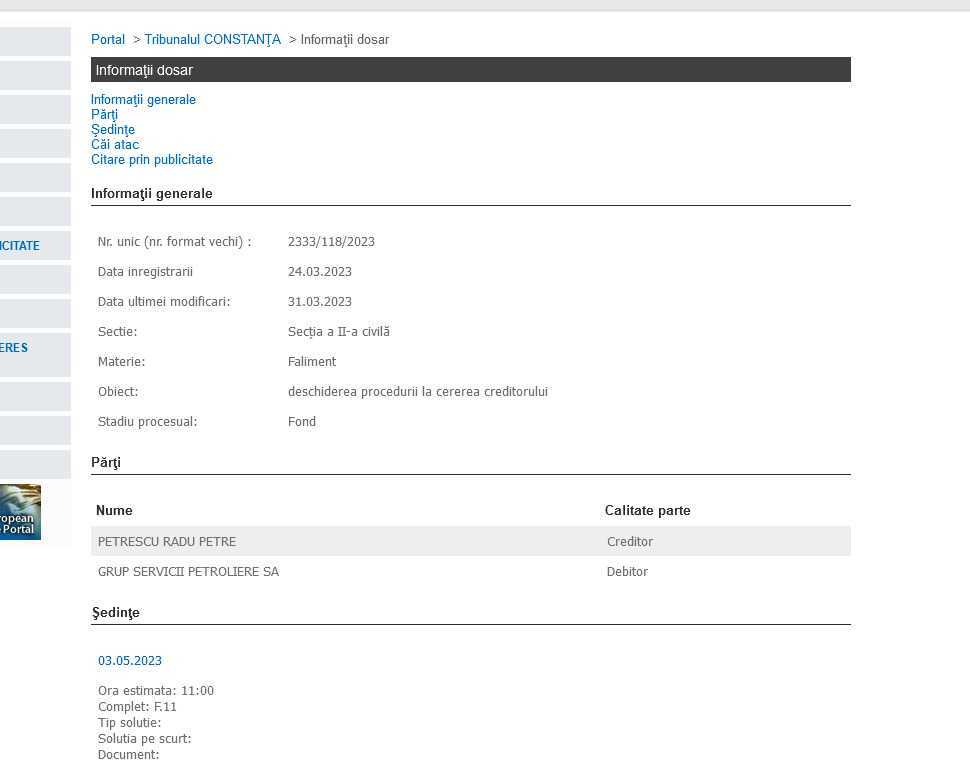 Dosarul a fost deschis la Tribunalul Constanța, pe 24 martie 2023, la secția a II-a civilă.