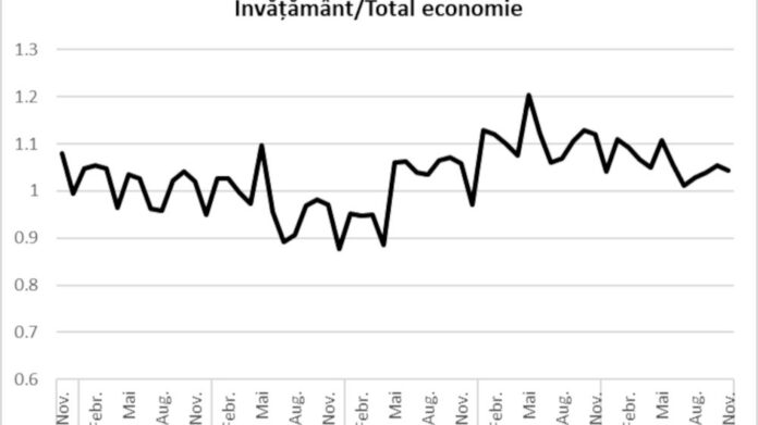 Pe scurt, praful. În 2024 am scris că “salariile profesorilor vor fi ce-au fost și chiar mai mici decât atât.” Hai că ușor-ușor îmi iese și această predicție, ca multe altele. Ce arată datele INS despre câștigul salarial mediu – atenție, câștigul salarial, nu salariul de bază – adică despre suma cu care pleacă profesorul în buzunar în funcție de cât muncește? Statistica ne spune că veniturile din invățământ au revenit unde erau, adică profesorii au fost puși la locul lor. Sau la colțul lor. După ce veniturile lor au crescut accelerat în urma grevei din 2023, depășind dinamica câștigului salarial mediu pe economie, ele au înghețat ulterior, ceea ce a restabilit poziția socială a profesorilor. Ca să fiu mai precis, câștigul salarial mediu din învățământ a ajuns în prezent (noiembrie 2025) chiar mai mic în raport cu câștigul salarial mediu din România decât era în noiembrie 2020. La vremea respectivă, profesorii câștigau cu 8% mai mult decât media salariatului român; acum câștigă doar cu 4% mai mult. Evident, constatăm și erodarea puterii de cumpărare. Salariul real a crescut în 2023 și 2024, dar a scăzut în 2025 și continuă să scadă în prezent. Ca putere de cumpărare, câștigul salarial din învățământ a fost în noiembrie 2025 cu 2% mai mare decât în noiembrie 2020. Doar cu 2% mai mare. O ilustrare perfectă a creșterii economice pauperizante la care m-am referit din când în când. Fiindcă trebuie să amintesc că creșterea economică, creșterea PIB real a fost de 15% în perioada 2021-2025. Însă după cum se vede venitul mediu net REAL a crescut doar cu 2%. Mai simplu spus, 5 ani de stagnare. Creșterea economică nu se reflectă nici pe de parte proporțional în creșterea puterii de cumpărare a majorității salariaților din România deoarece nu este o creștere incluzivă, ci se bazează pe practici extractive, pe măsuri de “lansare” și “relansare”, adică pe diferite scheme de îmbogățit băieții deștepți, de la subvenții pentru mașini electrice (prin care eu, iobag în România, am îmbogățit China și Dacia-Renault) până la programe de lucrări publice inventate din pix. Ca să revin la învățământ, probabil până la vară venitul real al profesorilor va mai scădea cu niște procente bune (prețurile cresc în fiecare lună), ceea ce le va coborî spre nivelul din 2021. Și uite așa ne tot furăm căciula, tot o ținem în măriri și înghețări, în greve și armistiții. Zbucium cât cuprinde, progres zero. Progresul este zero deoarece România este o țară defectă, un stat eșuat, am explicat un pic anterior, nu mai detaliez acum. Ar trebui să avem meritocrație în educație, ar trebui să vedem șuturi în fund pentru plagiatorii neamului, fiindcă dacă nu le dăm un șut în fund ei ajung să facă legile și să chinuie poporul. Ar trebui să avem concurență, nu slujbe pe viață. Și ar trebui să avem salarii mai mari care să atragă oamenii buni, nu ciurucurile. Ar trebui ca educația să reprezinte o prioritate, dar asta este o Fata Morgana.